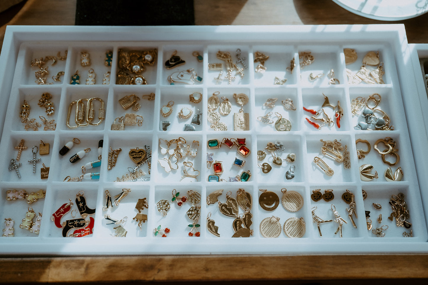 Step into a world of endless fun with our exclusive Charm Bar! Whether you're visiting us in-store or catching us at a pop-up event or party, our charm bar is designed for individuals and groups alike to create personalized accessories that are as unique as you are! Charms arrive weekly with gold and silver pieces available spanning necklaces, bracelets, earrings, bag and shoe charms.